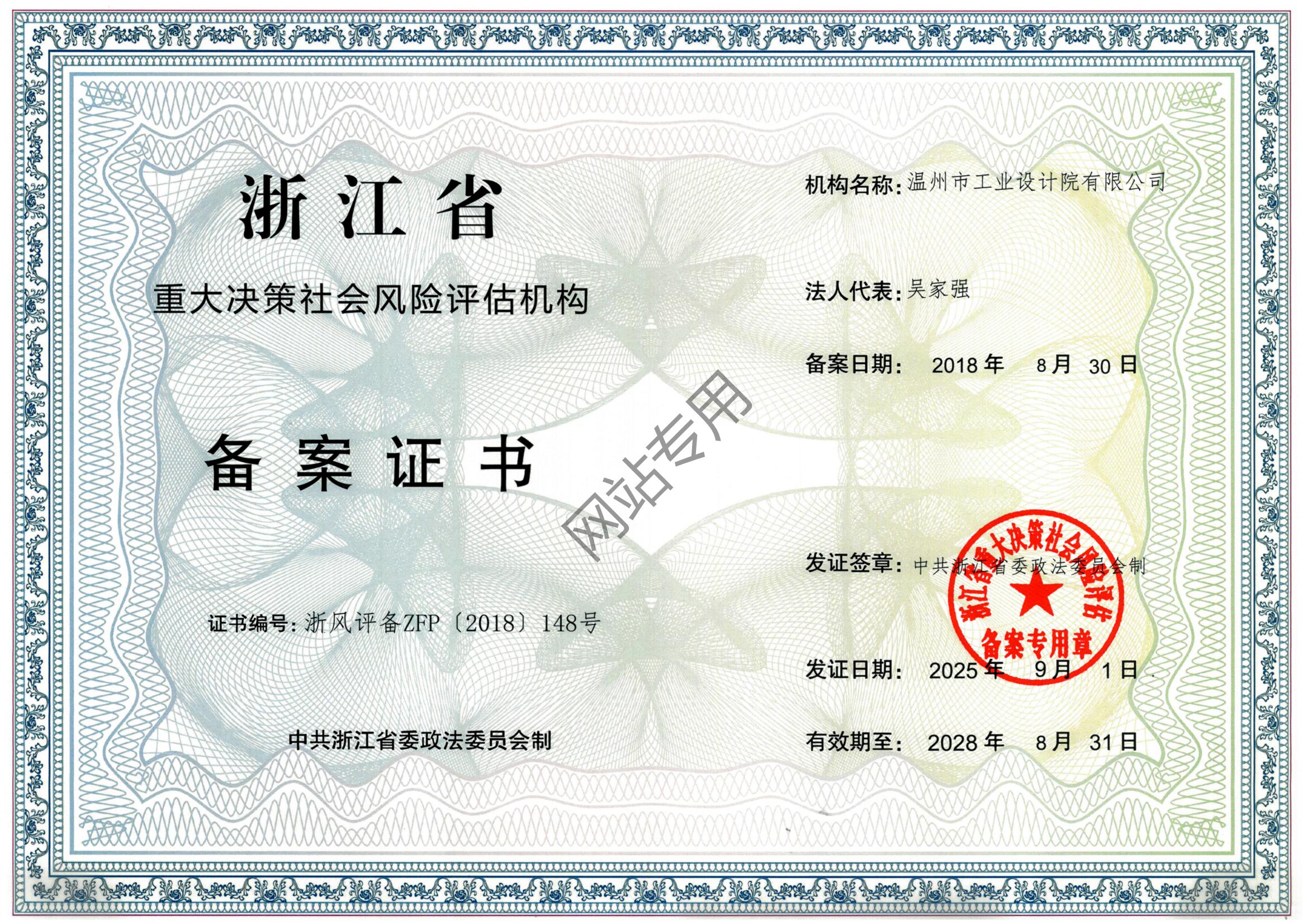 浙江省社會(huì)穩(wěn)定風(fēng)險(xiǎn)評(píng)估機(jī)構(gòu)備案證書