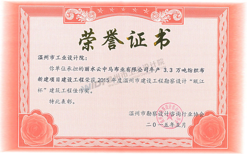 麗水云中馬布業(yè)有限公司年產(chǎn)3.3萬噸紡織布新建項目建設(shè)工程 甌江杯建筑工程佳作獎